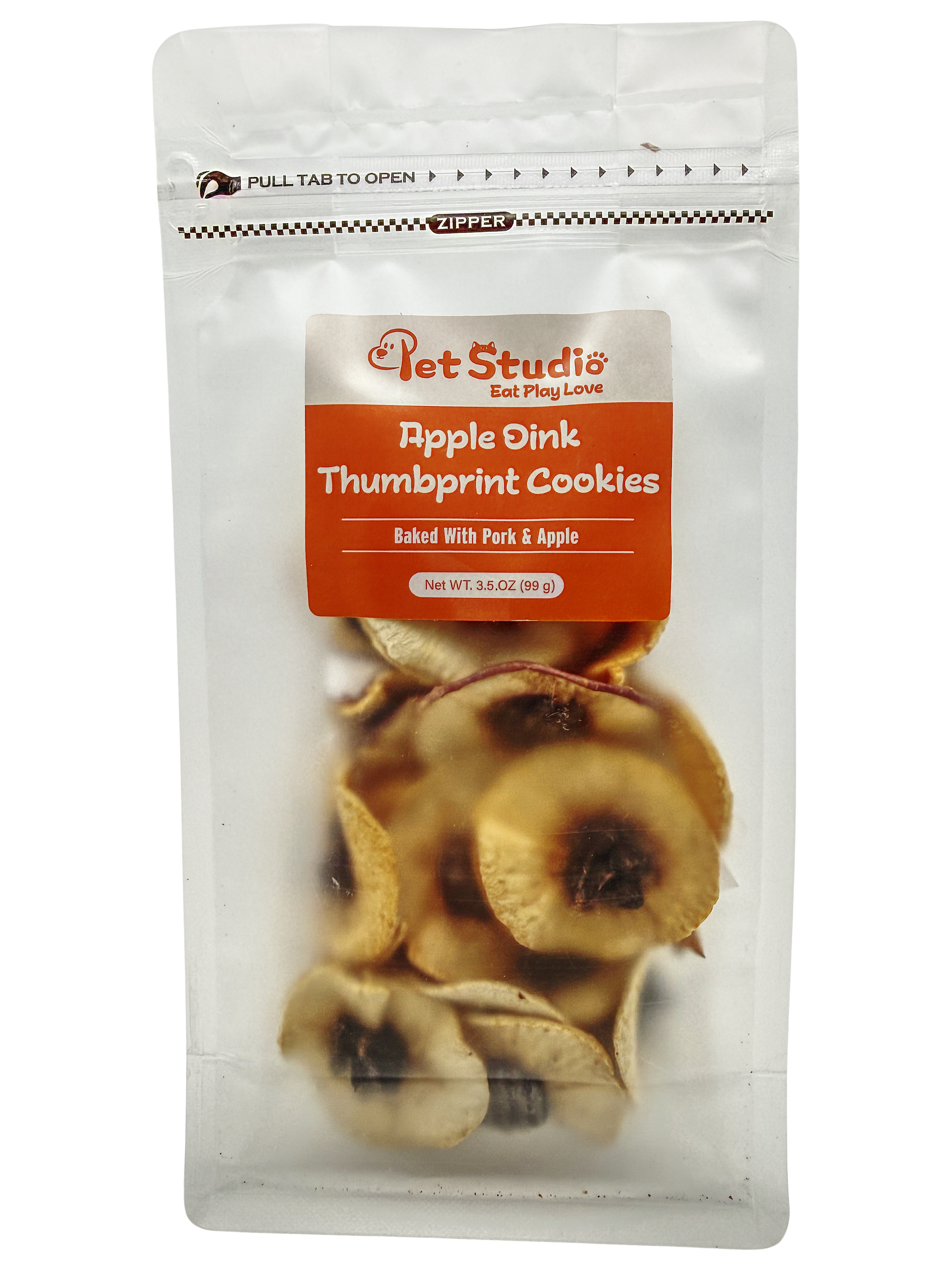Delight your pup with the savory-sweet taste of Apple Oink Thumbprint Cookies. Handcrafted with only four wholesome ingredients—Pork, Pork Liver, Apple, and Rice—these high-protein treats are perfect for dogs with food sensitivities or those who need an alternative to chicken and beef.